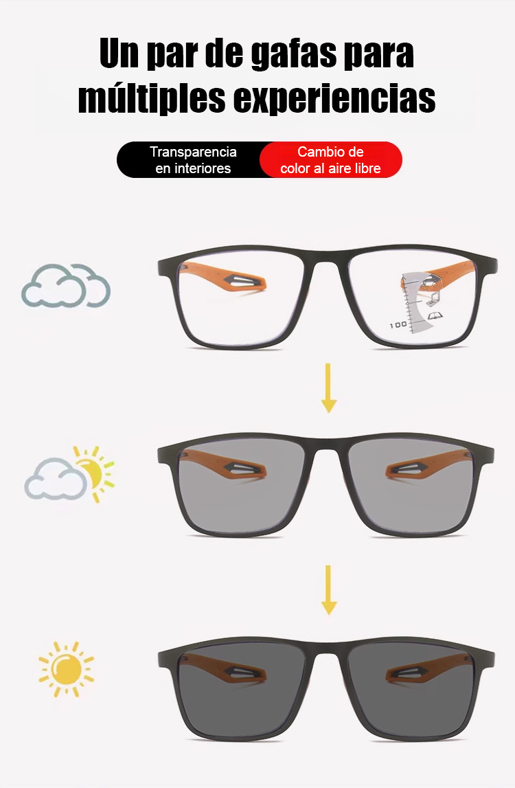 Nuevas gafas progresivas antideslumbrantes con protección contra la luz azul y lentes que cambian de